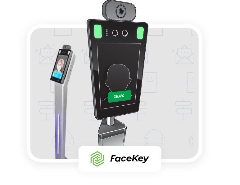 Easy-to-put tablet to manage the mobility flows of your teams and customers in the Covid context Measure temperature, wear a mask Authentication by reading RFID card or facial recognition Public attendance reports according to schedules